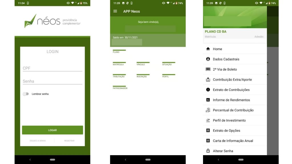 Nele, o Participante ou Assistido encontrará os principais serviços, já utilizados no site da Néos, como consultas do Extrato de Contribuições e Aviso de Crédito, download do boleto para Contribuição Extra/Aporte e de cobrança (Autopatrocinado), além de alterações no cadastro e senha de acesso à área restrita.