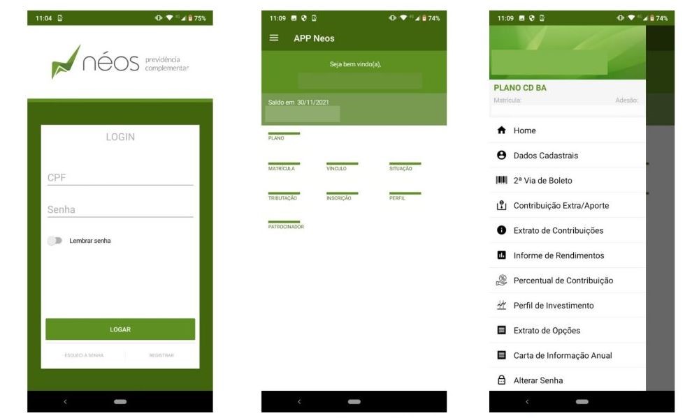O aplicativo traz os principais serviços, já utilizados no site da Néos, como consultas do Extrato de Contribuições e Aviso de Crédito, download do boleto para Contribuição Extra/Aporte e de cobrança (Autopatrocinado), além de alterações no cadastro e senha de acesso à área restrita.