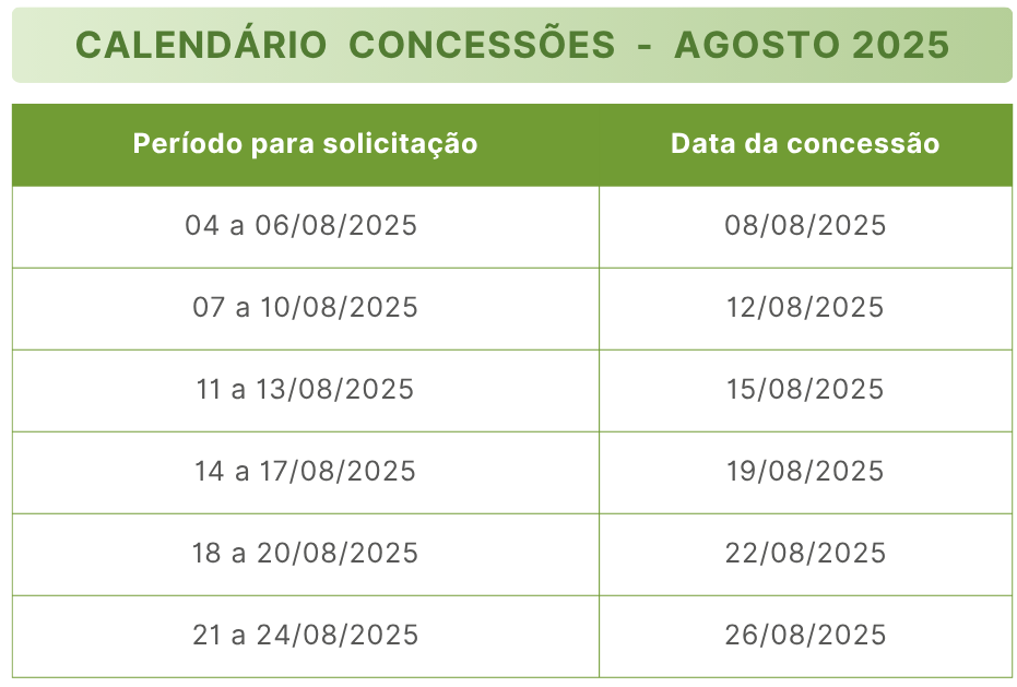 A Néos informa que as concessões de empréstimos já estão disponíveis. O calendário para realizar as solicitações poderá ser consultado abaixo: