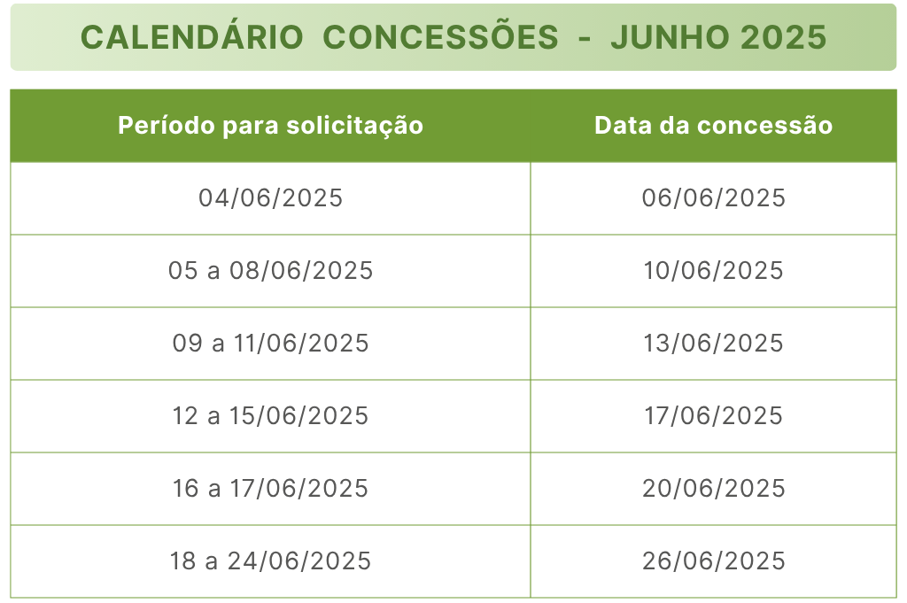 A Néos informa que as concessões de empréstimos já estão disponíveis. O calendário para realizar as solicitações poderá ser consultado abaixo: