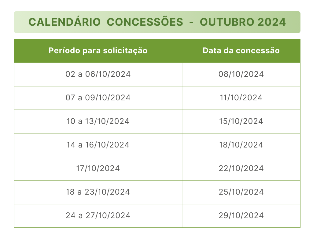 A Néos informa que as concessões de empréstimos já estão disponíveis no Portal e no App da Entidade. O calendário para realizar as solicitações poderá ser consultado abaixo: