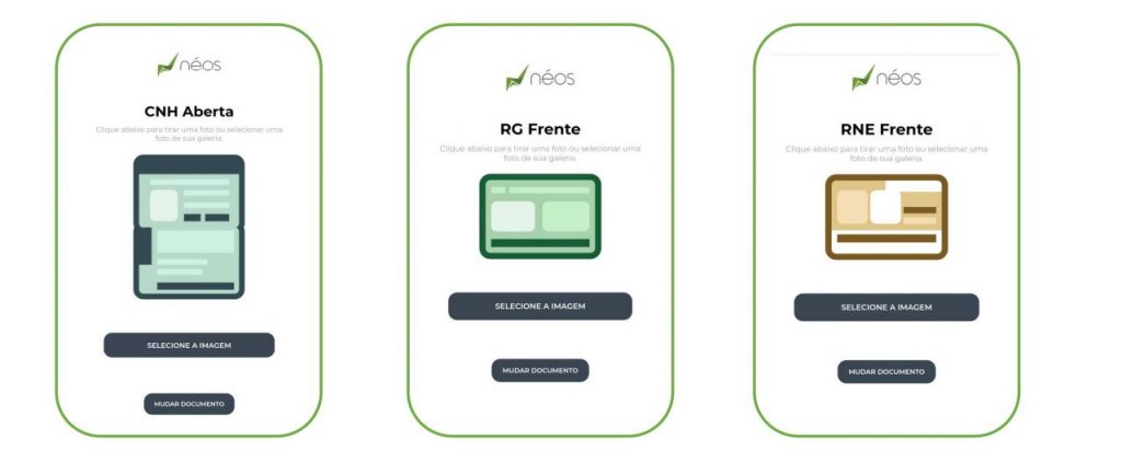 4. Escolha o documento de identificação (RG, CNH ou RNE) e tire foto desse documento de identificação.