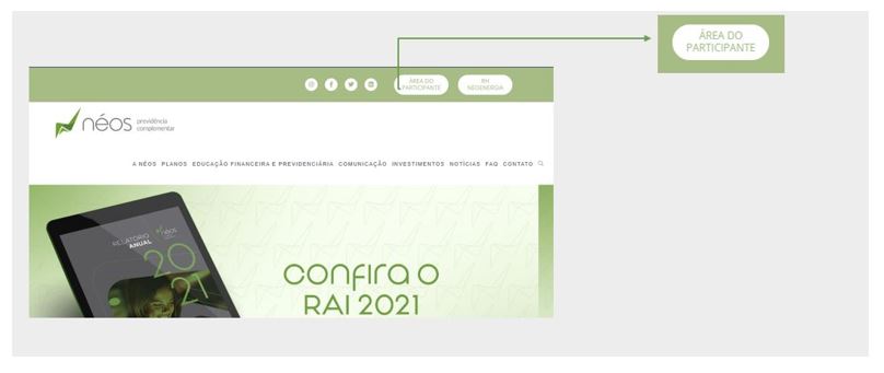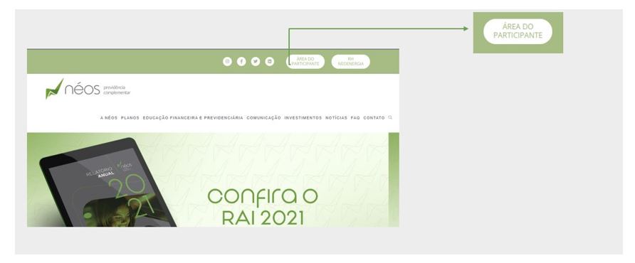 - Após acessar o site www.dev.neosprevidencia.com.br, clique em “Área do Participante”.