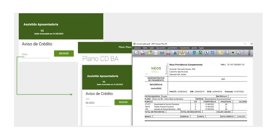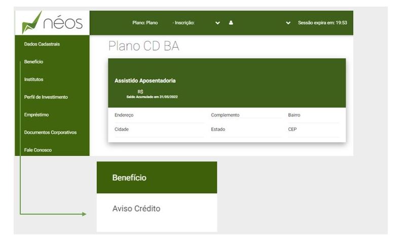 Os Assistidos dos Planos administrados pela Néos, podem consultar a qualquer momento e de forma segura, o Aviso de Crédito, para acompanhar a movimentação do Benefício. A consulta pode ser realizada na Área do Participante.